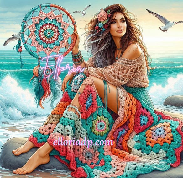 Élégance bohème et couleurs éclatantes ! Ce diamond painting met en scène une femme au bord de l’océan avec un dreamcatcher et une jupe crochet multicolore. Une toile inspirante, idéale pour apporter charme et originalité à votre intérieur.