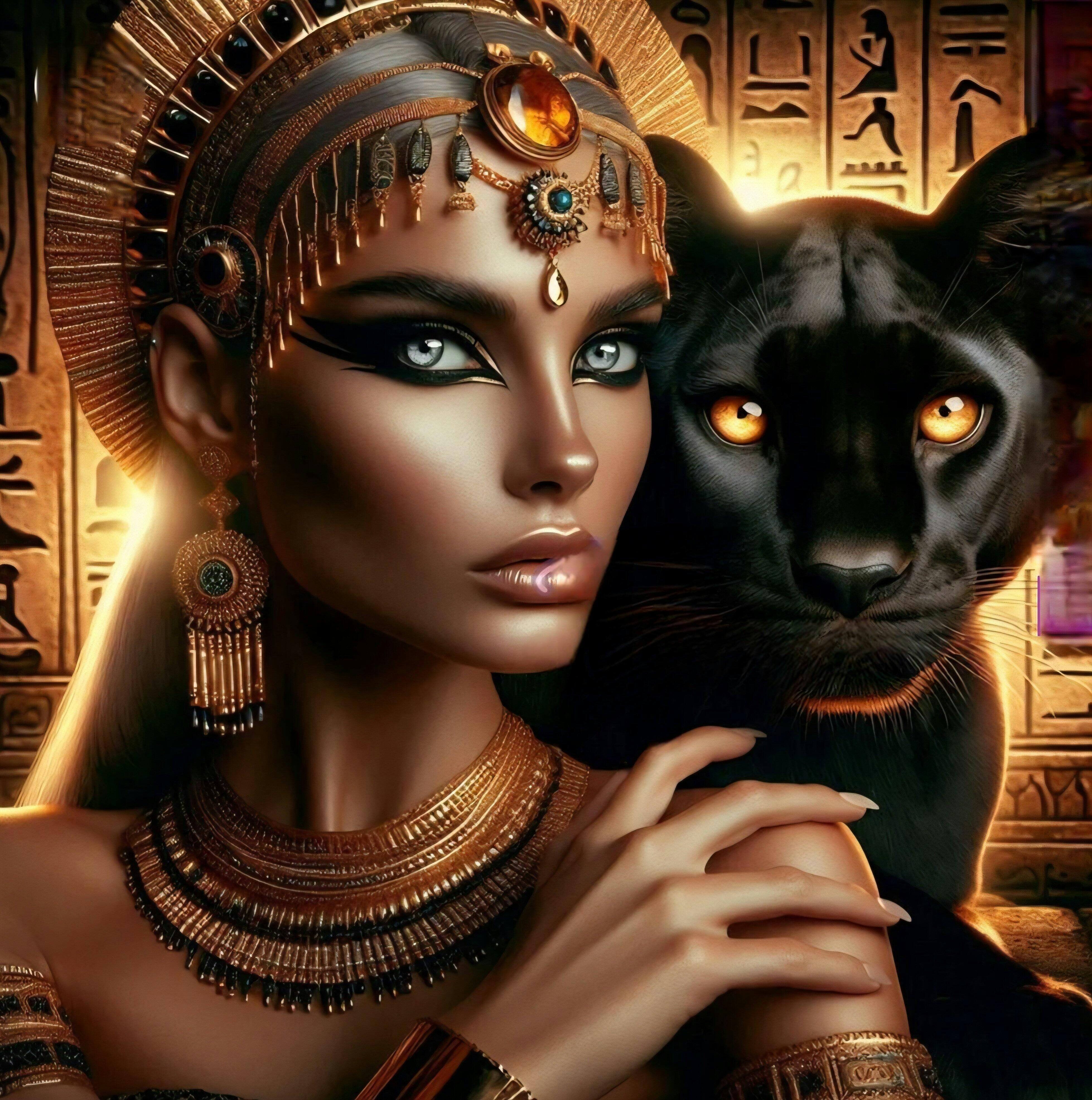 Entrez dans la splendeur de l’Égypte antique avec Néfertari, une reine sublimée par ses parures dorées et son regard de braise, accompagnée d’une panthère noire au regard intense. Ce visuel saisissant combine puissance, élégance et mysticisme, idéal pour les passionnés d’histoire et de légendes égyptiennes.