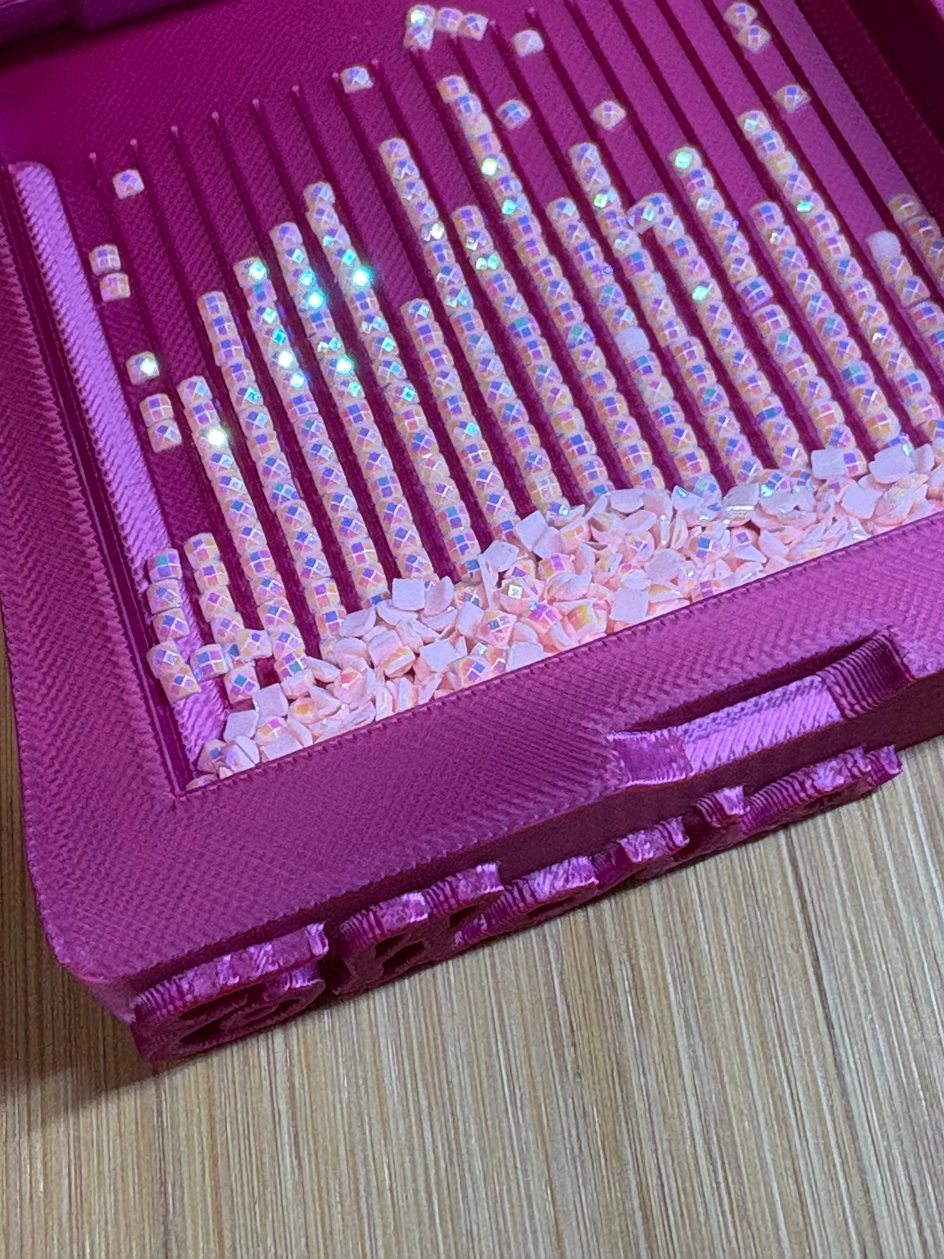 Sa barrière de sécurité intégrée empêche vos diamants de s’échapper, tandis que ses rainures fines assurent une glisse fluide et un alignement parfait des perles.